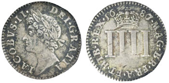 Moving onto milled coinage this unusual 1687 Maundy set realised £300.
