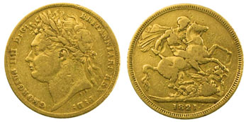 In the gold coins section this 1821 sovereign, graded as fine, sold for £516.