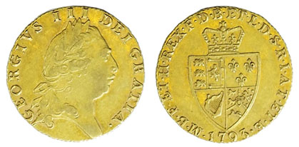 This 1793 spade guinea, graded as good very fine, sold for £519.