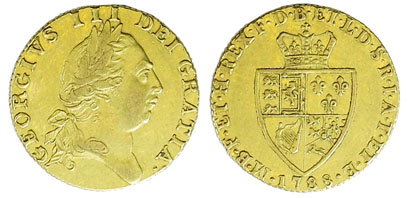 Guineas and fractional guineas were in good supply with this 1788 spade guinea achieving £472.