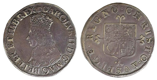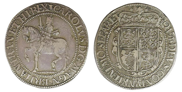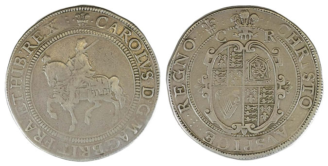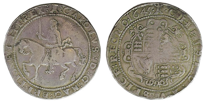 And this Charles I Exeter Mint 1645 crown, graded as about fine, realised £737.