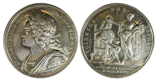 This interesting 1727 commemorative medal by J Croker, made to celebrate the Coronation of George II, sold for £283.