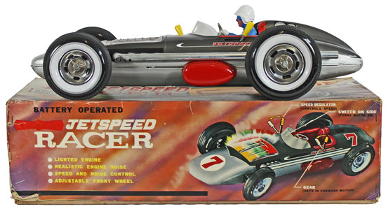 This Yonezawa battery operated ‘Jetspeed’ tinplate racing car sold for £295.