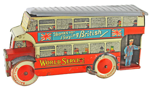 Wells was also a popular brand in this section with this pre-war ‘World Service’ clockwork bus which achieved £82.