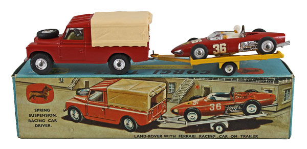 This Ferrari Racing Gift Set No. 438 with Land Rover and Ferrari F1 on trailer sold for £271.