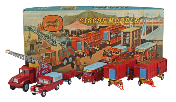 This Chipperfields Circus Gift Set No. 23 with various trucks and animals realised £483.