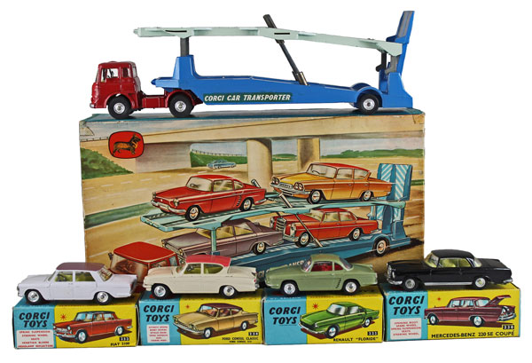 This Carrimore Car Transporter Gift Set No. 28 with car transporter lorry and 4 cars achieved £507.