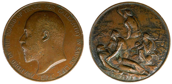 A rare 1903 Sea Gallantry Medal & Danish Medal For Saving Life, to John Hay, sold on estimate for £1,400. Both were awarded as a result of the wrecking of the \'Xenia\' off the Scottish coast.