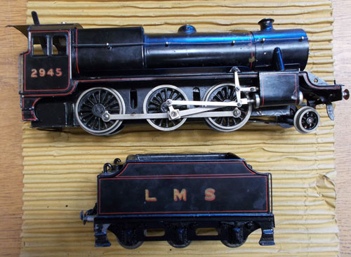 Moving on to the O gauge section, highlights included this Bassett-Lowke LMS Stanier Mogul 2-6-0 black 2945 locomotive and tender, which realised £372.
