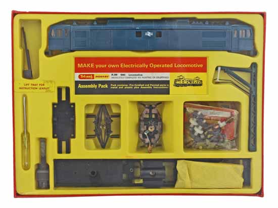 In the Hornby section this very unusual EM2 blue electric locomotive unmade Assembly Pack No. R388U achieved £216, over double estimate!