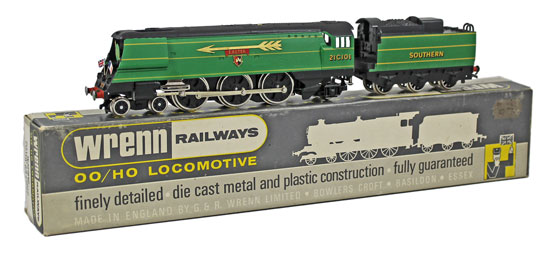 And this SR streamlined Bullied Pacific SR 21C101 ‘Exeter’ Golden Arrow No. W2276/5P locomotive and tender realised £ 384.