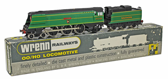 There was an excellent selection of Wrenn locomotives offered in this sale. Highlights included this LMS Coronation 8P class 6221 ‘Queen Elizabeth’ No. W2301 locomotive and tender which achieved £360.