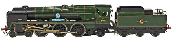 And this scratch built gauge 1 SR 34071 ‘601 Squadron’ locomotive and tender sold for £1,416.