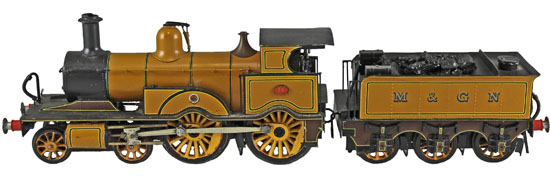 And this M&GN light brown 24 Class A 4-4-0 locomotive and tender sold for £354.