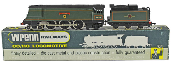 In the OO gauge this Wrenn BR green 34004 Yeovil 4-6-2 locomotive and tender No W2268A realised £708.