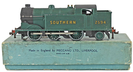 Moving on to the OO gauge section this Hornby Dublo LNER olive green 2594 on bunker Class N2 0-6-2 tank locomotive No. EDL7 achieved £507.
