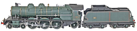 Continuing the theme of modern O gauge, this unusual Rivarossi PLM green 6204 Pacific 231 Class 4-6-2 locomotive and 8 wheel tender realised £578.