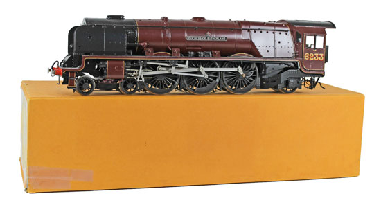 In the gauge 1 section highlights included this Finescale Brass RTR (Sancheng) LMS maroon 6233 ‘Duchess of Sutherland’ 4-6-2 locomotive and tender which realised £1,140.