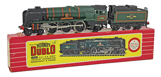 In the OO gauge section this Hornby Dublo BR Rebuilt ‘West Country’ Class 4-6-2 BR 34005 ‘Barnstaple’ No. 2235 locomotive and tender sold for £168.