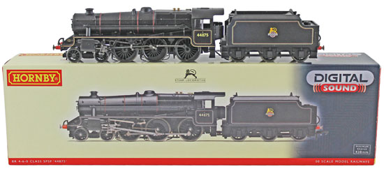 Moving on to the OO gauge section this modern Hornby DCC fitted BR black 44875 locomotive and tender No. R2804XS sold for £180.
