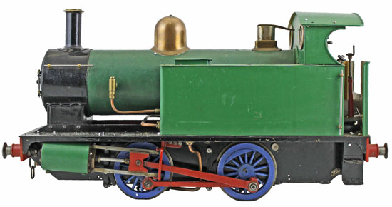 And this scratch/ kit built 3½ inch gauge 0-4-0 green body, blue wheels tank locomotive achieved £630.