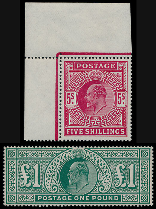 A King Edward VII 1911-13 Somerset House print 5/- achieved £485 and a £1 from the same printers sold for £1,300.