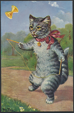 Lot 79 was an animal, Arthur Thiele collection and included cats with many sets featuring Heads series 710, A Cats Love series 851, Women With Hats series 896. Diablo series 947, At the School Big Scenes series 962, Paintings series 975 etc. This lot sold for £1,300.