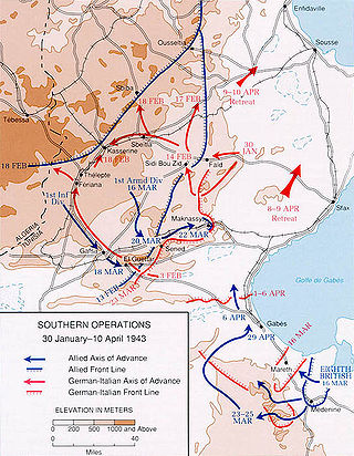 The Mareth Line was an old pre-war French defensive position in Southern Tunisia running some 25 miles inland from the sea, which the Germans had reinforced and strengthened. The Allied attacks on the Line started on 19th March and after a week’s heavy fighting, the German and Italian forces were finally forced to withdraw by the 28th March allowing the Allied forces to press on into southern Tunisia.