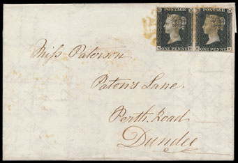 An 1840 1d black pair on entire.