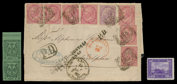 A substantial range of Italy is on offer, from Modena early imperf values, early Empire covers and Colonial issues.