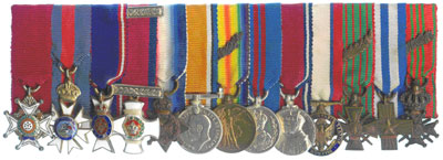 The full size medal details are WWI Distinguished Service Order, 1914-15 star trio with MID oak leaf, 1911 Delhi Durbar Medal, 1935 Jubilee Medal, US Distinguished Service Medal, French 1914-17 Croix de Guerre with palm leaf, Italian War Merit Cross and Belgian Croix de Guerre with palm leaf to Maj Gen H.K. Bethell (Capt on star).The miniature group consists of CB, CMG and MVO plus the above listed full size medals.